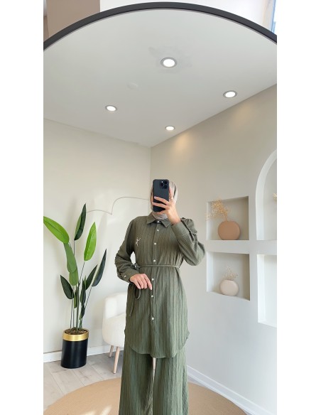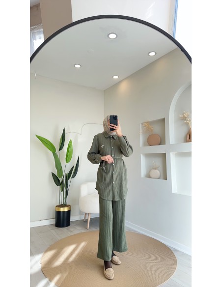 7027 örme detaylı takım Yeşil