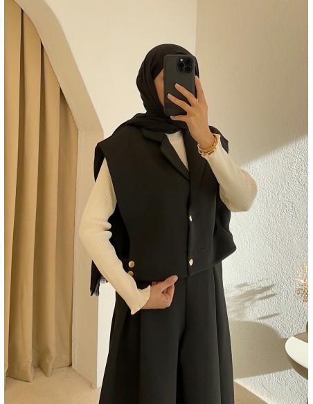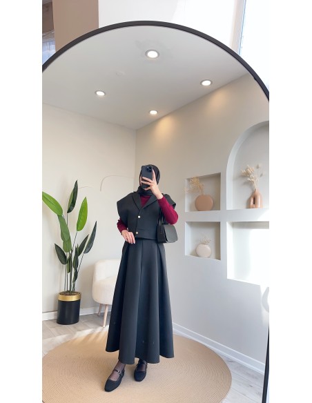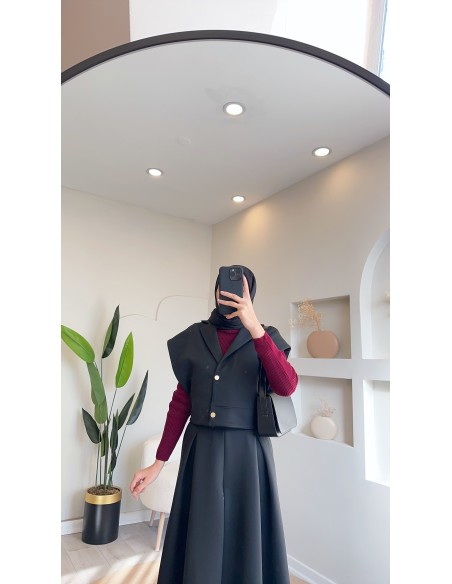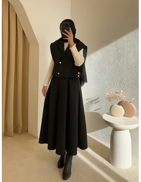 51005 yanları çıtçıtlı etek takım - siyah