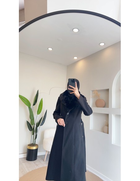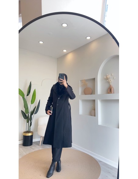 1098 kürklü kaşe kaban - siyah
