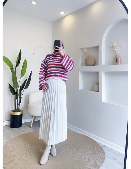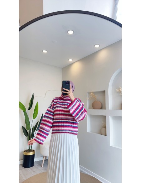 E-233 renkli çizgili kazak - pembe