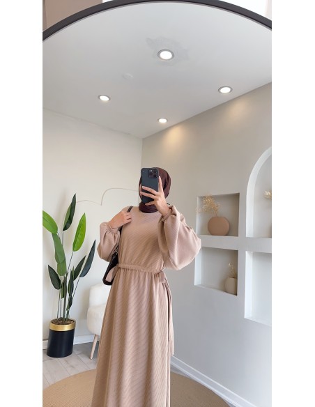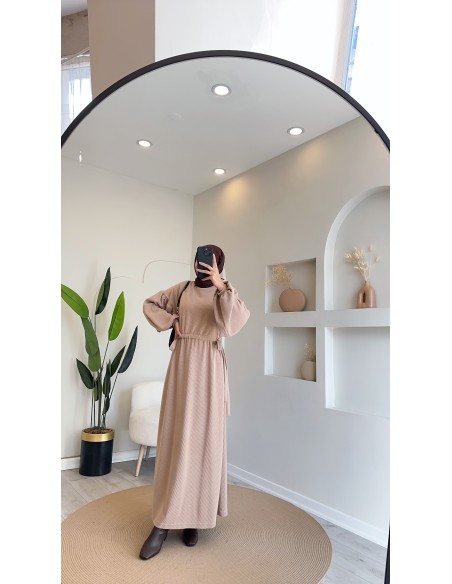 803 Yanlardan Bağcıklı Elbise Camel