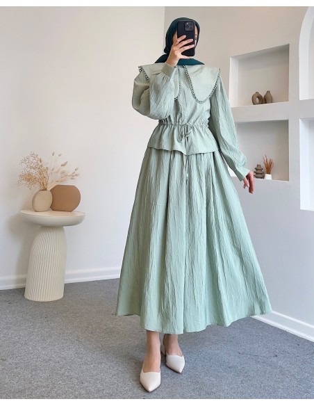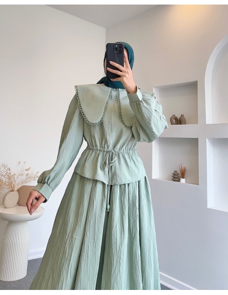 1382 yaka detay etekli takım - Çağla