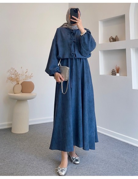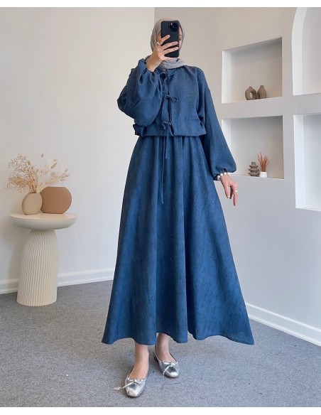 51008 bel büzgülü bağlamalı etek takım - Lacivert