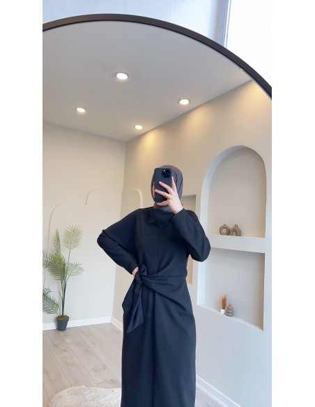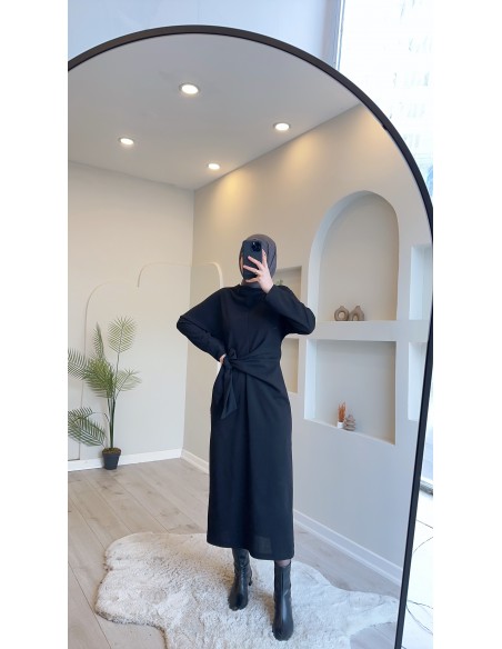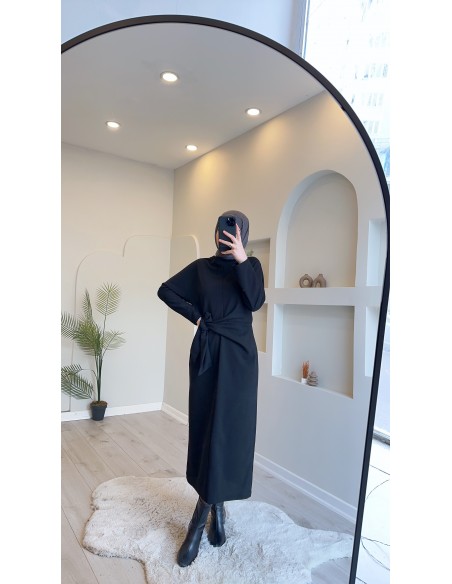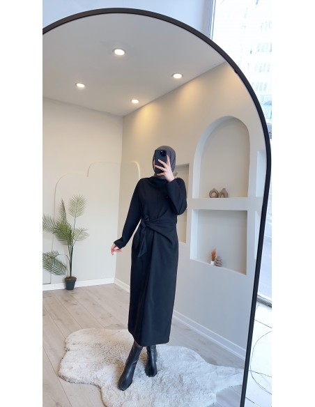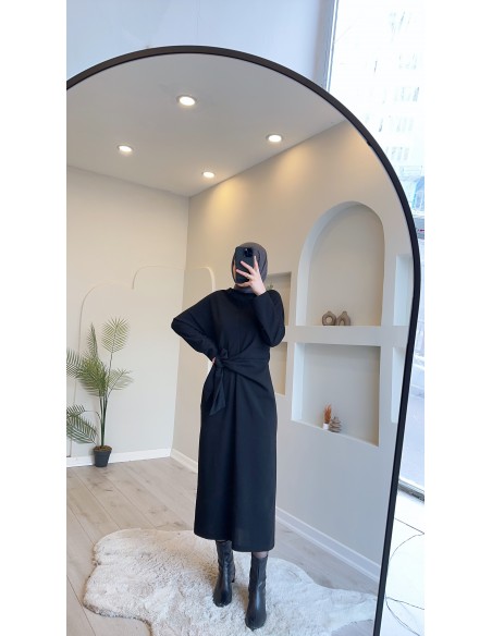 5424 Bağlamalı Bilek Boy Elbise Siyah