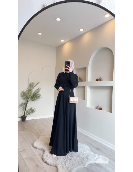 2183 krep abiye elbise siyah