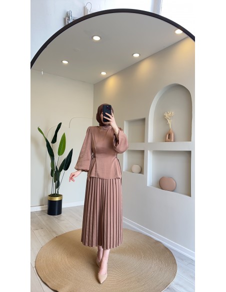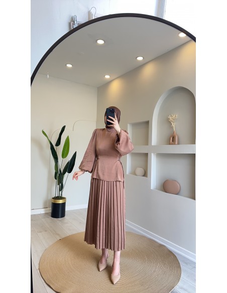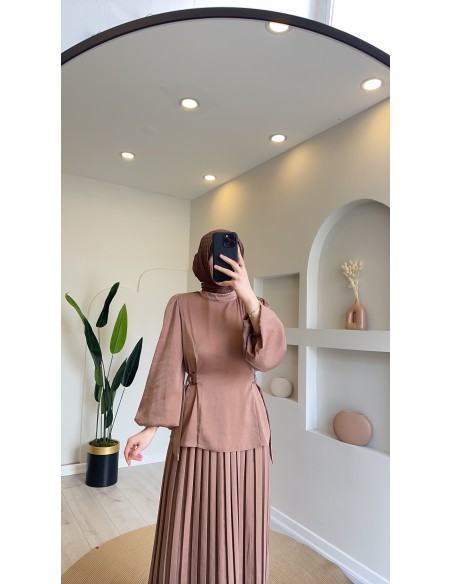 B2994 yan düğmeli bağlamalı gömlek - Bordo