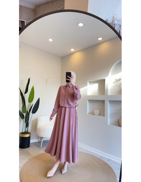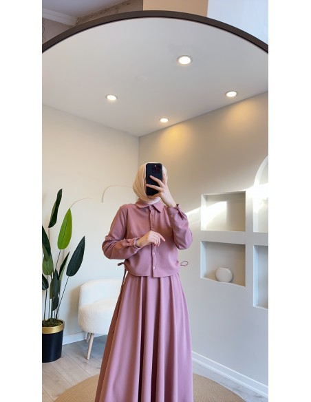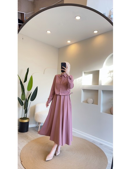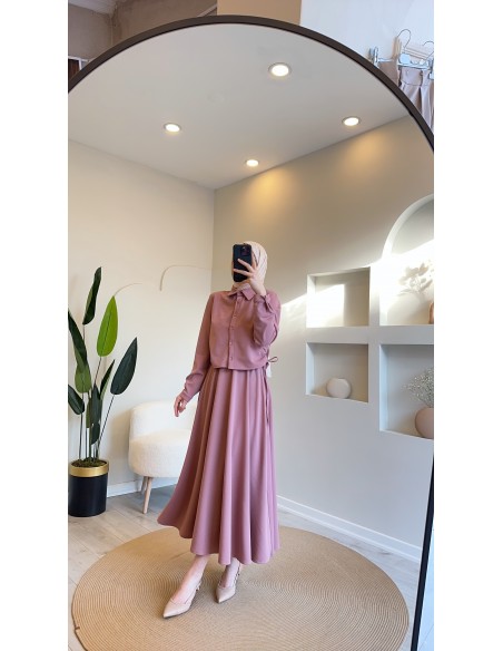 Birinci sınıf ithal krep kumaştan üretilen etek takımımız üst bluz önden düğmeli yanlardan sıkmalıdır etek beli lastikli boy 90 cmdir (2/3 cm yanılma payı vardır) kendi bedeninizi tercih edebilirsiniz