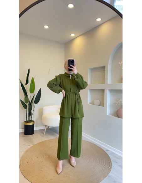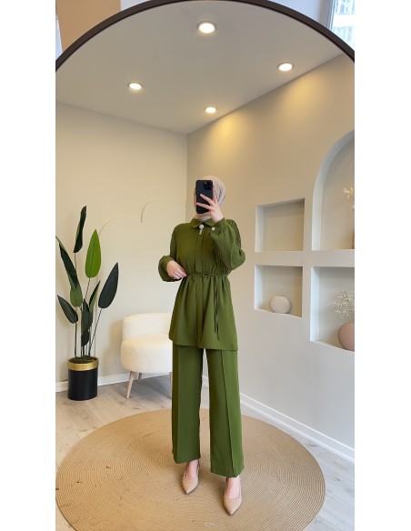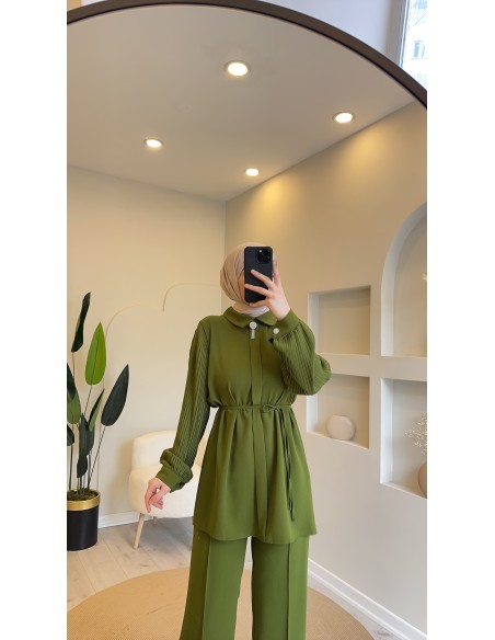 Krep kumaştan üretilen pantolon takımımızın pantolon beli lastikli tam kalıptır üst tunik yakası taş broşludur beli ince kemerlidir kemersizde kullanabilirsiniz kendi bedeninizi tercih edebilirsiniz