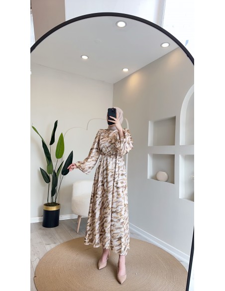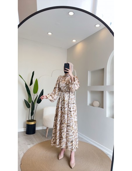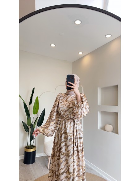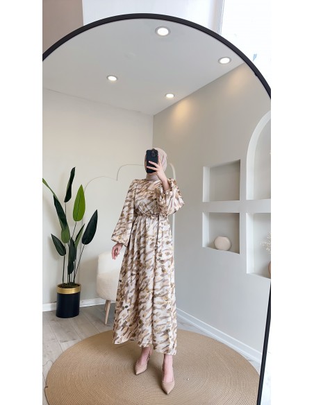 6027 blok desen elbise vizon