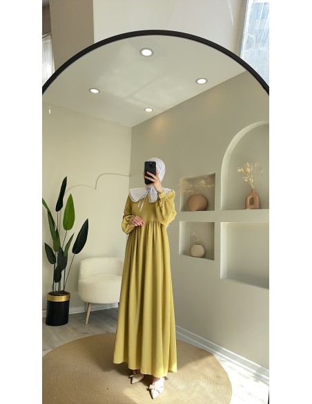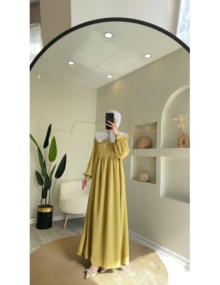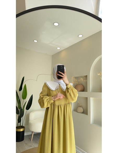 8668 yakalı elbise oliv yeşil