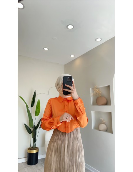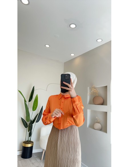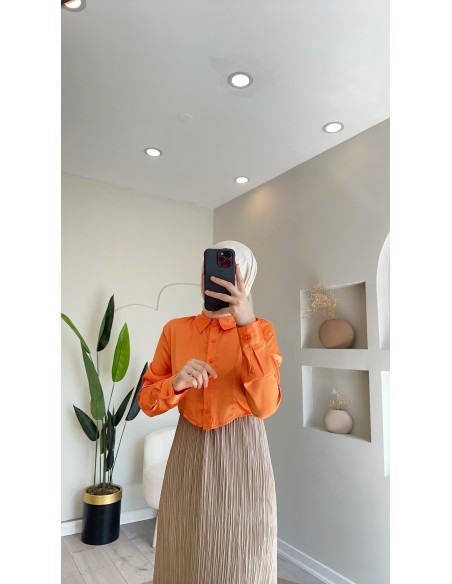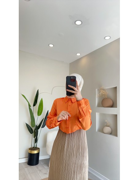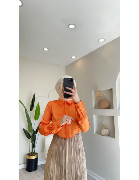 02511 Tasarım crop gömlek Oranj