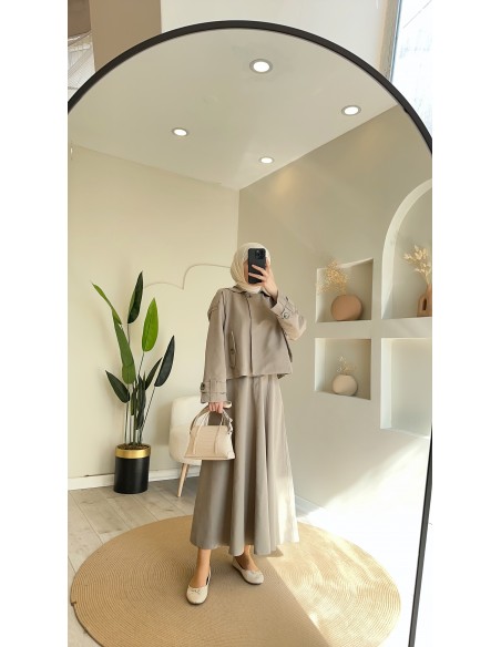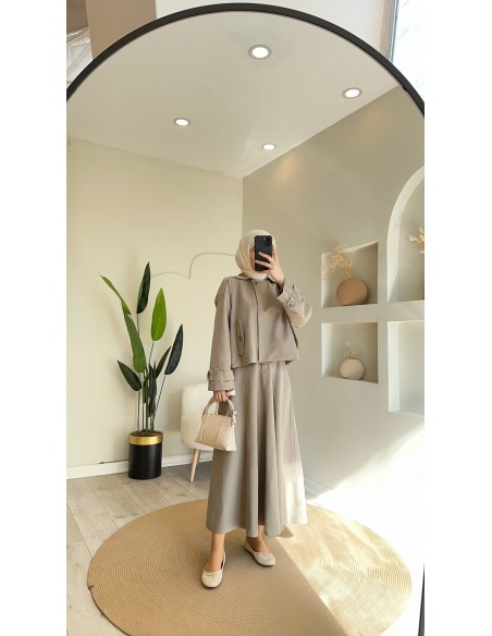51008 bel büzgülü bağlamalı etek takım - yeşil