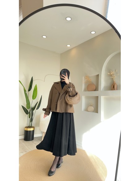 51008 bel büzgülü bağlamalı etek takım - Taş