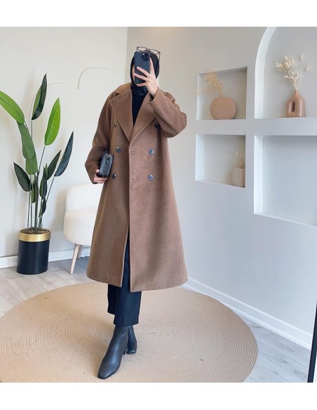 VP-109 tay tüyü kaşe kaban - kahverengi