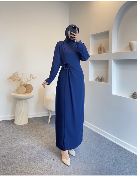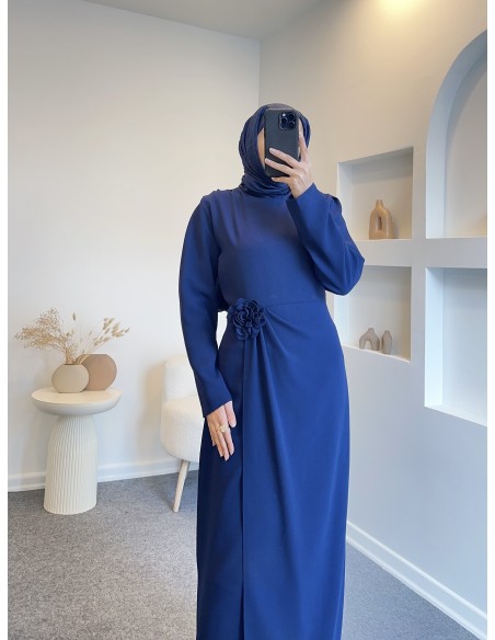 2126 Gül detay romantik elbise - lacivert