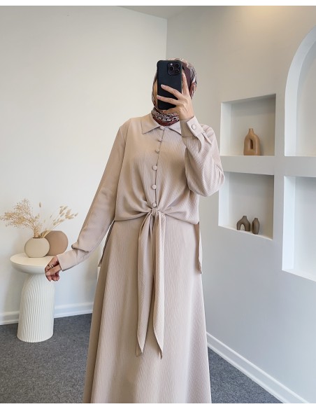 İthal Krep kumaştan üretilen sare bağlamalı takım, şıklığı ve rahatlığı bir arada sunuyor. Hem günlük kullanımda hem de özel günlerde rahatlıkla tercih edebileceğiniz bu takım, kaliteli kumaşı ve modern tasarımıyla gardırobunuzun vazgeçilmezi olacak. Ürünümüzün detayları: Mankenin üzerindeki beden 36 etek boyu 93 cm