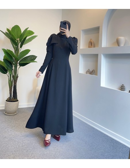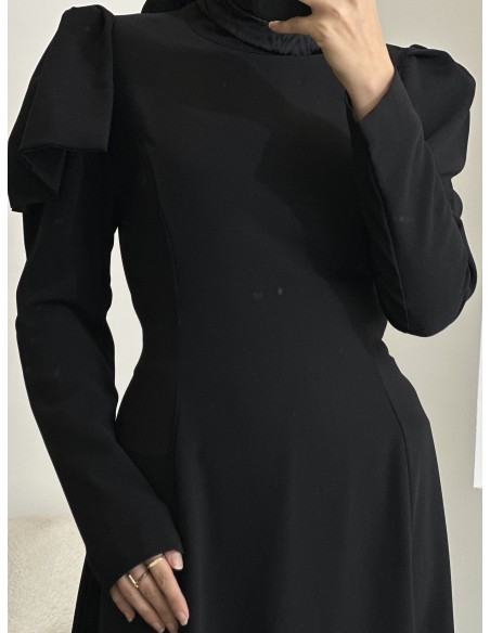 9178 Fiyonklu Belden Oturtmalı Elbise - Siyah
