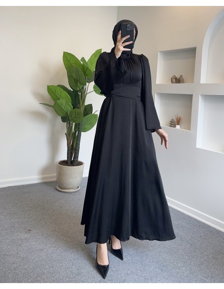 Elbise Kumaşı:Abiyelik Saten Kumaştan Üretilmiştir. Ürün ASTARSIZDIR ve iç göstermez.Hakim yakalıdır.Bel yanlardan çıkan geniş kuşakla bağlanmaktadır.Elbise 140'cm'dir.Ürün bedenlidir.Tam kalıptır bedeninizde sipariş verebilirsiniz.