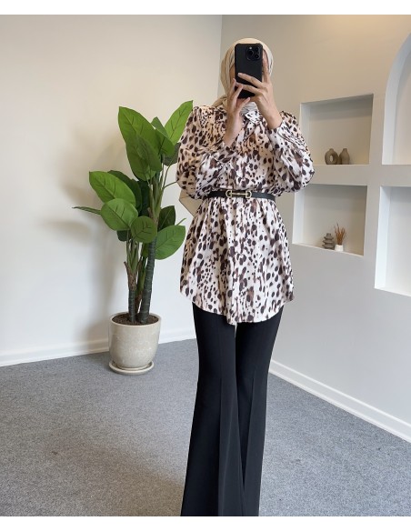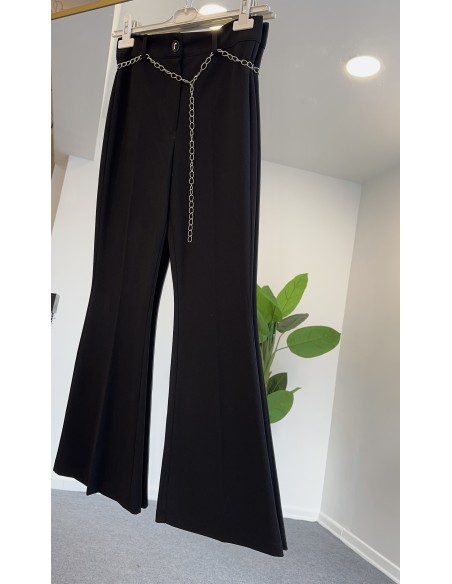 Klasik zamanların en sevilen parçası ispanyol paça pantolonlar... Yüksel bel olan pantolonun dört adet kemer köprüsü bulunmaktadır. Önü fermuarlı ve düğmelidir. Halkaların bir araya gelerek oluşturduğu zincir kemer de ürünümüze dahildir.