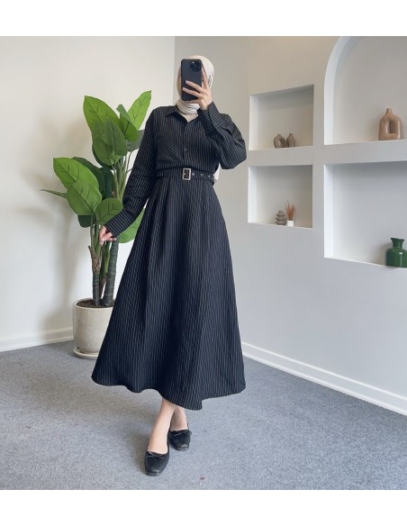 2640 Günlük rahat spor gömlek etek takım - siyah