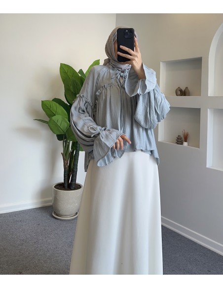 1000 fırfırlı salaş bluz - mavi