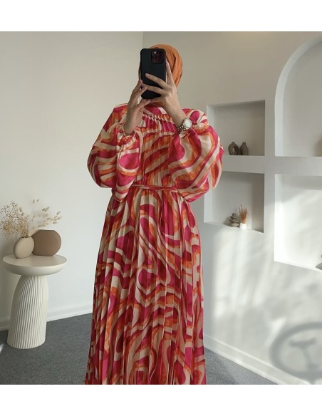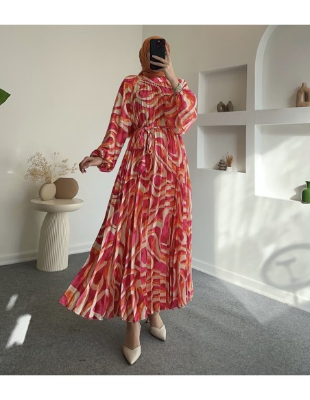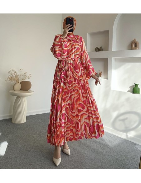31006 saten pliseli nova elbise - Turuncu