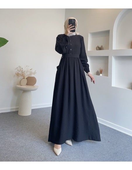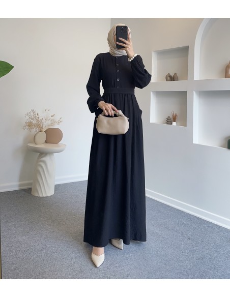 25Y9135 Düğmeli giy çık elbise - Siyah