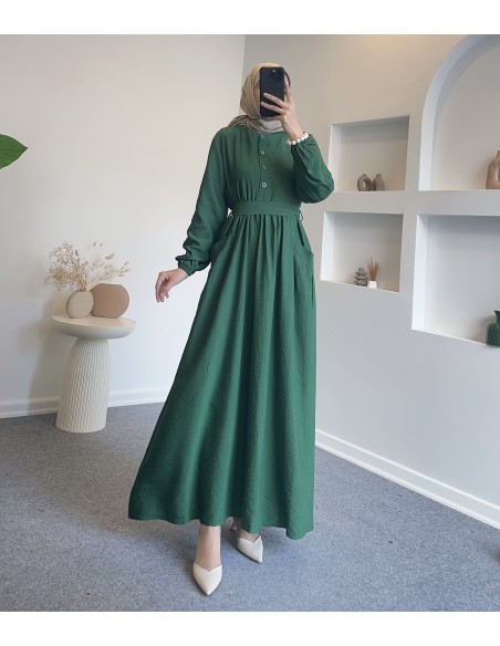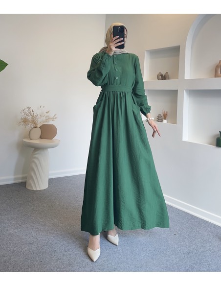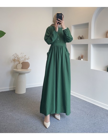 25Y9135 Düğmeli giy çık elbise - yeşil