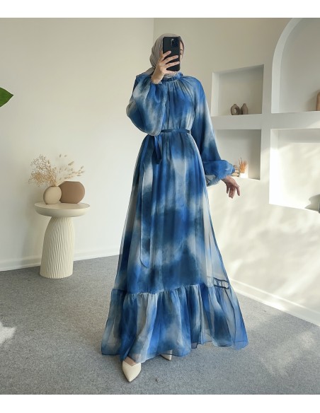 Ürünümüz şifon kumaştır seyyar kuşaklı tam boy astarlı 150 cm dir