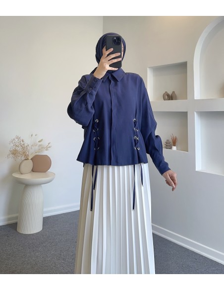6578 metal aksesuarlı gömlek - Lacivert