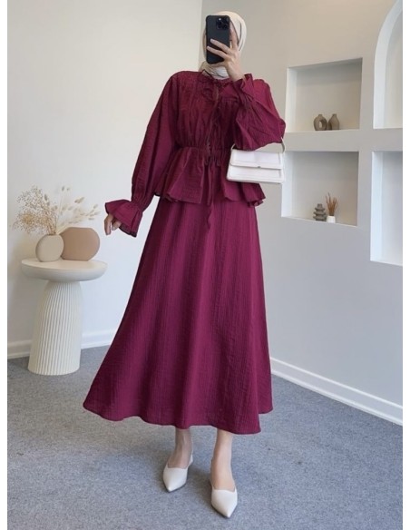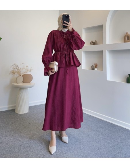 Takım pamuklu gofre kumaştır. Etek boy 95 cm dir