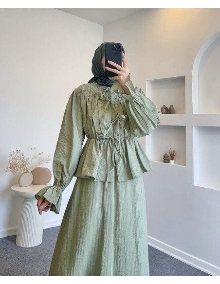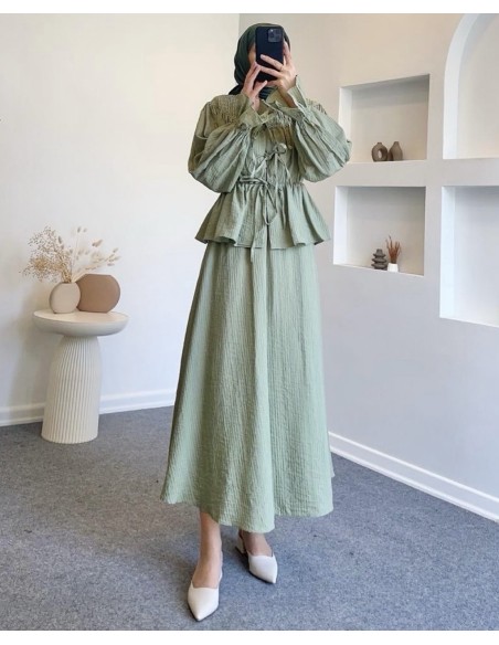 Takım pamuklu gofre kumaştır. Etek boy 95 cm dir