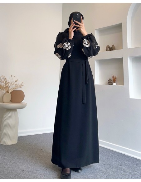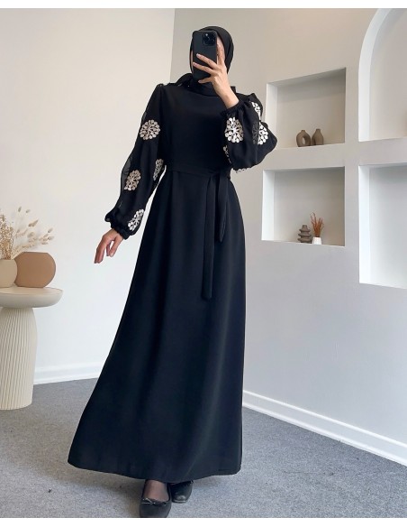 1068 Kar Kol Nakışlı Balon Kol Elbise