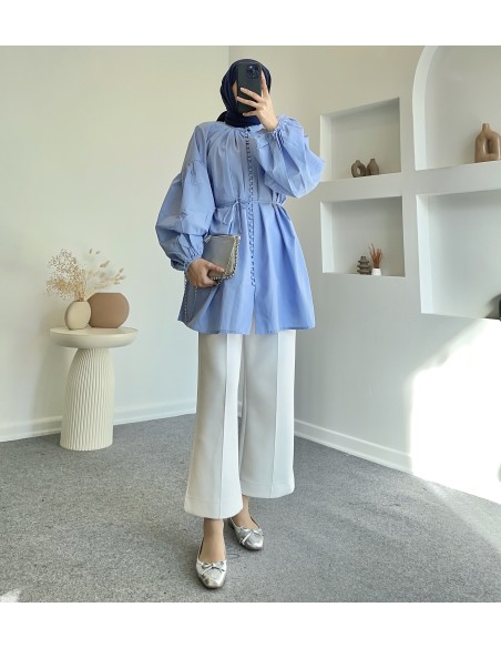 HY24311 düğmeli poplin gömlek - bebek mavisi