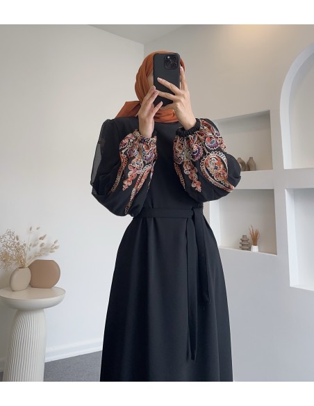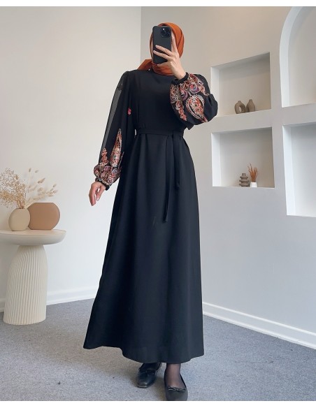 1068 karkol nakışlı kol elbise - turuncu
