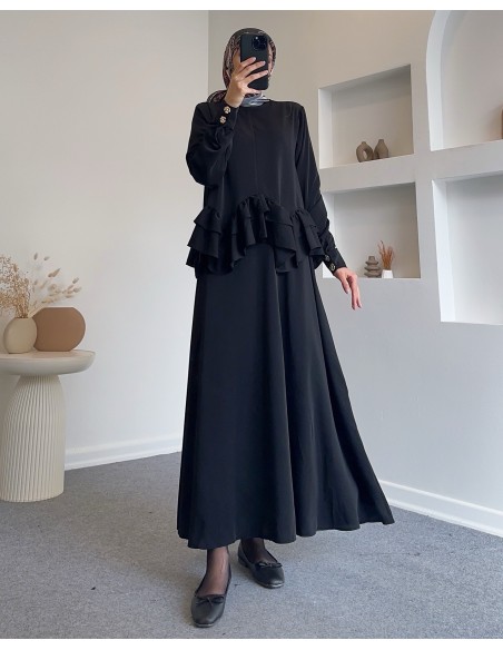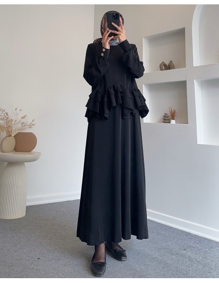1107 fırfırlı volan detay etek takım-Siyah
