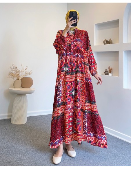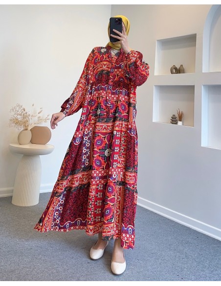 25Y9145 etnik desen elbise - turuncu
