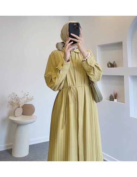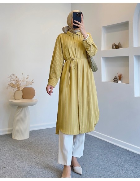 7774 çizgili kuşaklı tunik - yağ yeşili