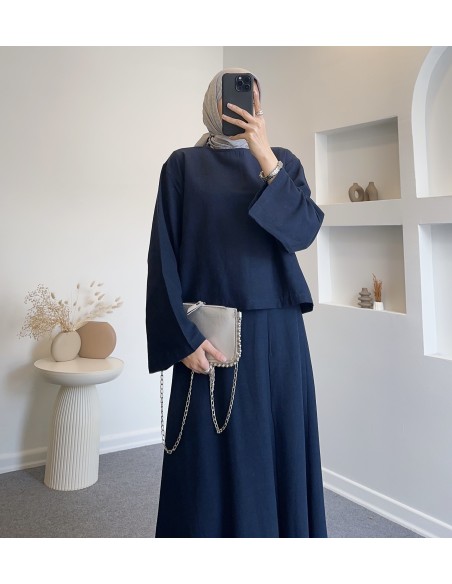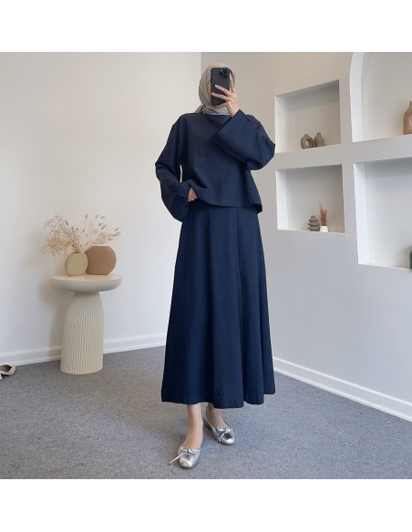 Mevsim geçişlerine ve yaz aylarına özel olarak tasarlanan bu zarif takım, sade şıklığı ve konforu bir arada sunuyor. Seyyar kemeriyle vücut tipinize göre ayarlanabilir form kazanan üst parça, geniş kesimli etekle tamamlanıyor. Doğal dokusu ve hafif kumaşı sayesinde gün boyu rahatlık sağlar.