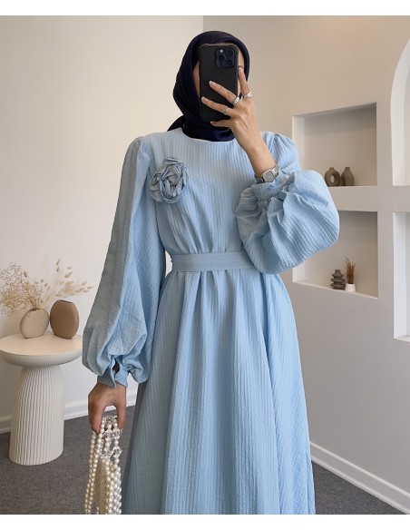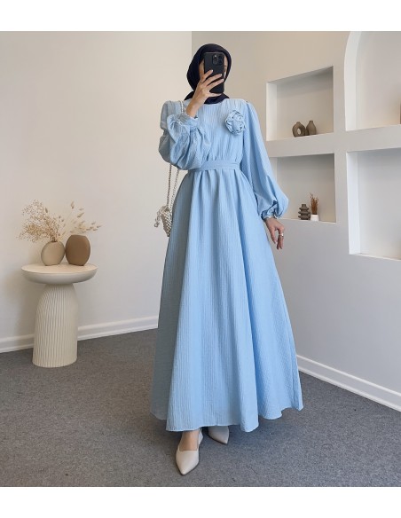010 gül detay elbise - Mavi