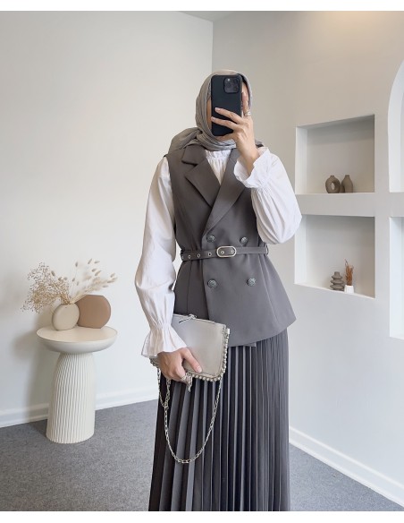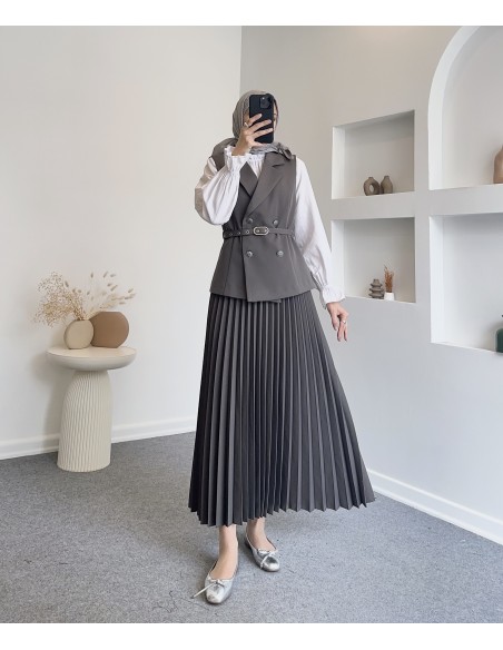 Ürün: 2’li Takım (Cepli Kemerli Yelek + Piliseli Etek)