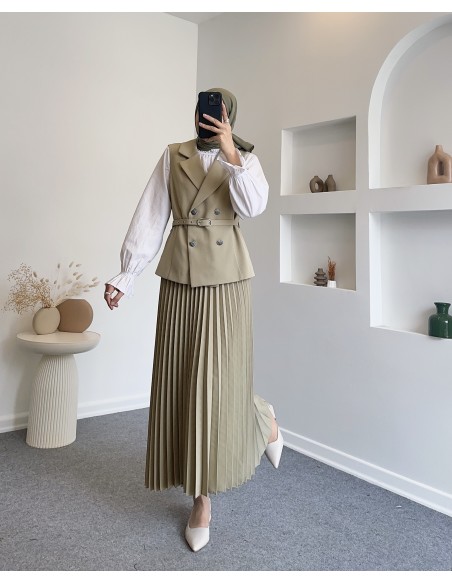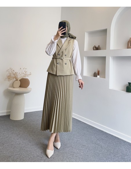Ürün: 2’li Takım (Cepli Kemerli Yelek + Piliseli Etek)