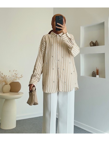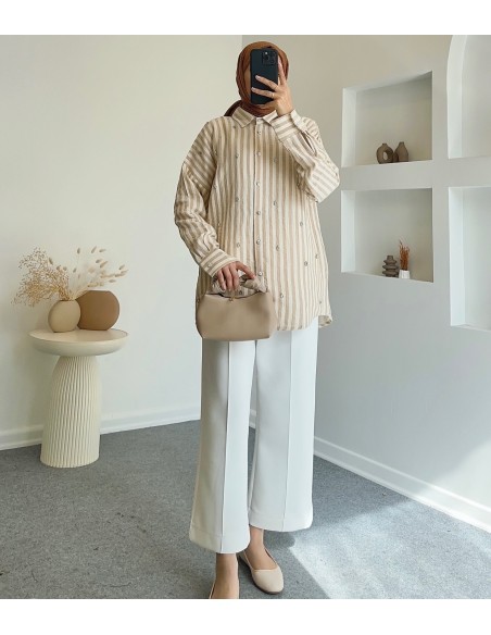5183 taş detaylı tunik - Bej