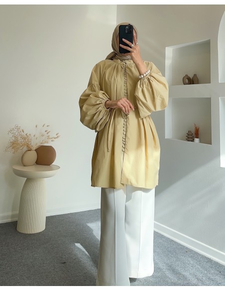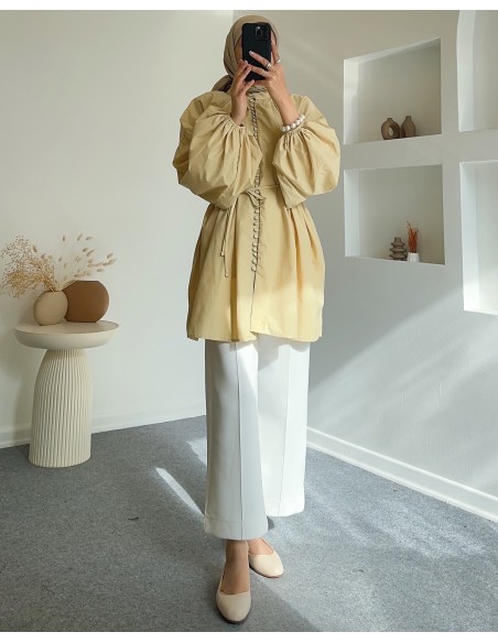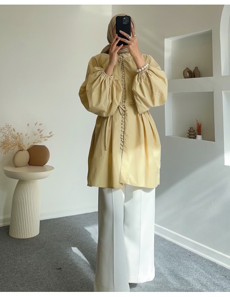 HY24311 düğmeli poplin gömlek- limon sarısı