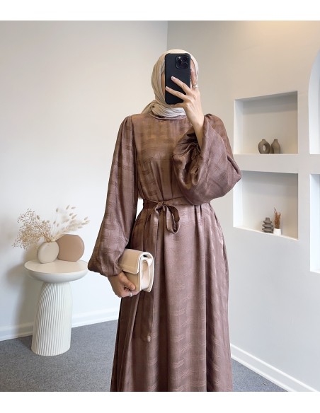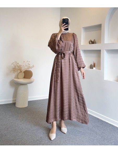 6085 saten elbise- Camel