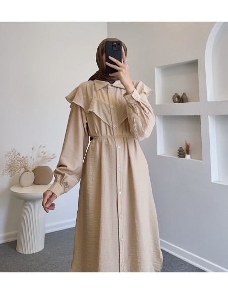 Ürün kumaşı pamukludur seyyar kuşaklı yanlardan yırtmaçlıdır