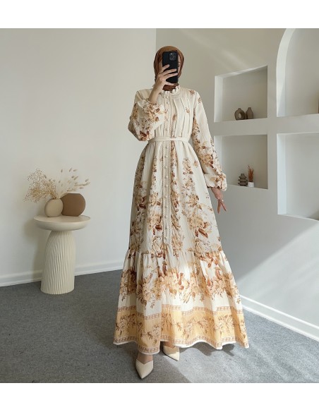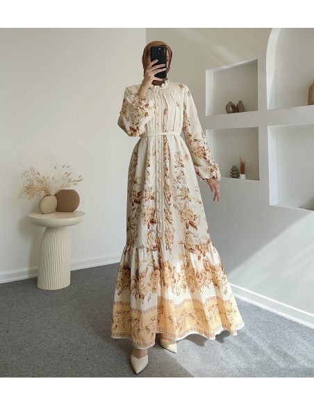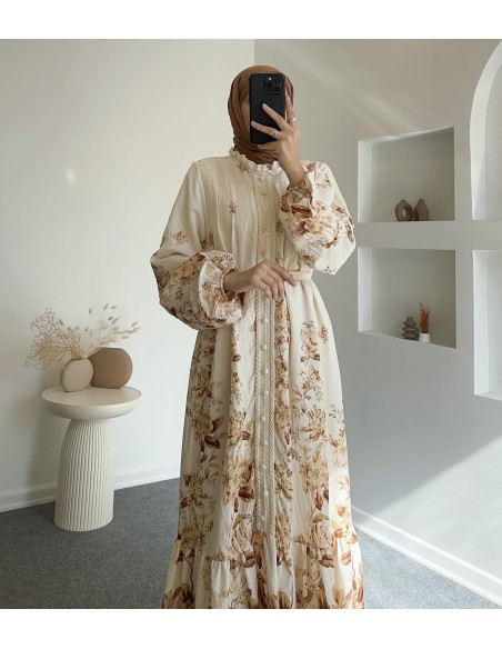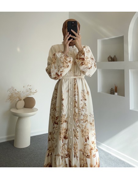 51126 güpür detay elbise -Bej
