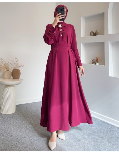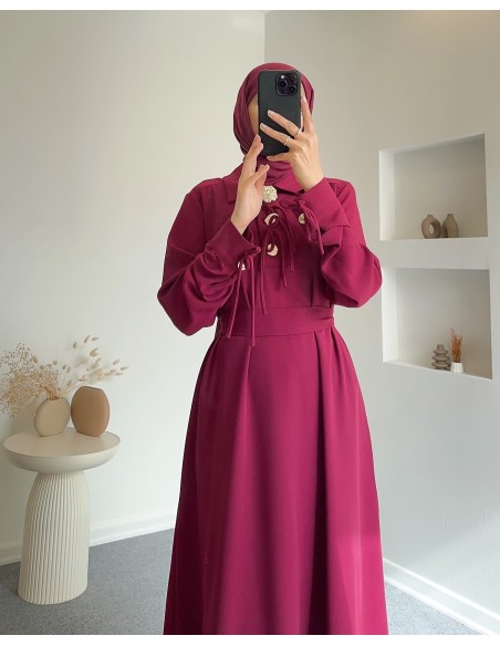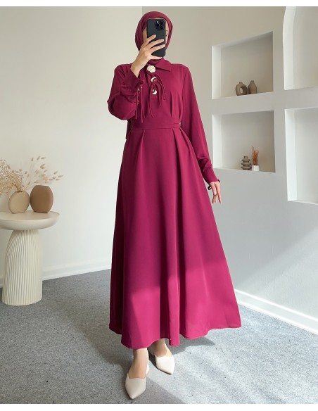1402 fiyonk detaylı linda elbise -Bordo