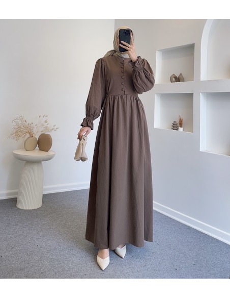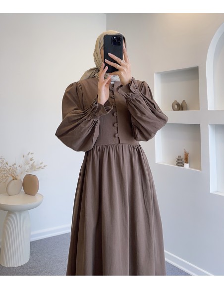 317 yanlanlardan bağlamalı elbise - kahverengi