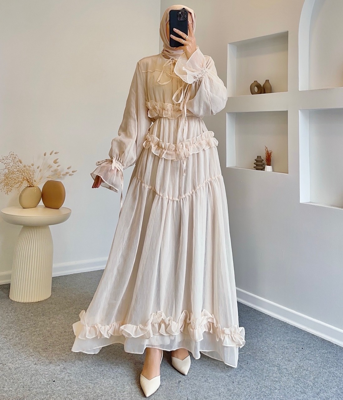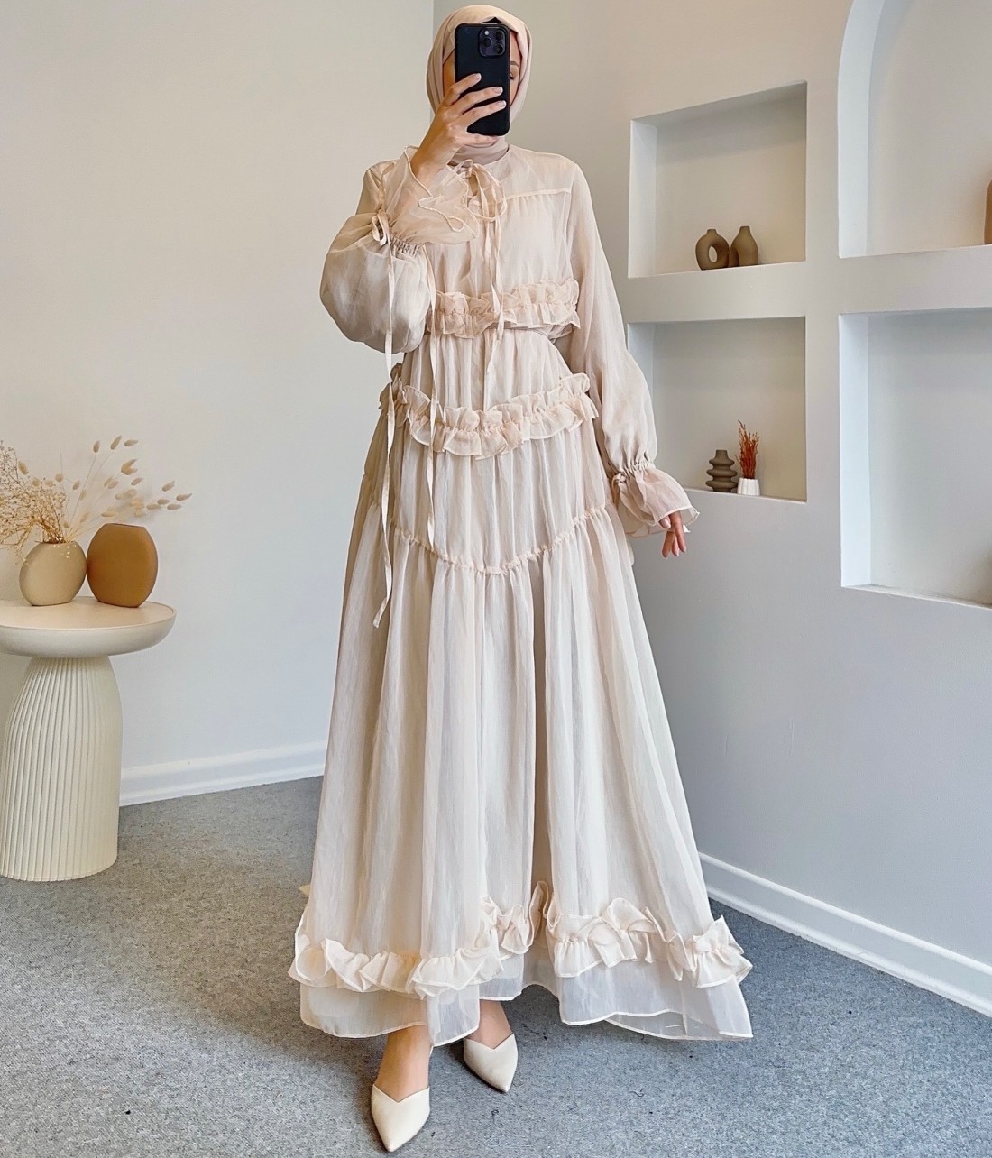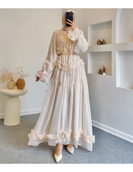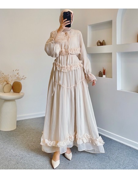 51094 fırfırlı peri elbise- taş